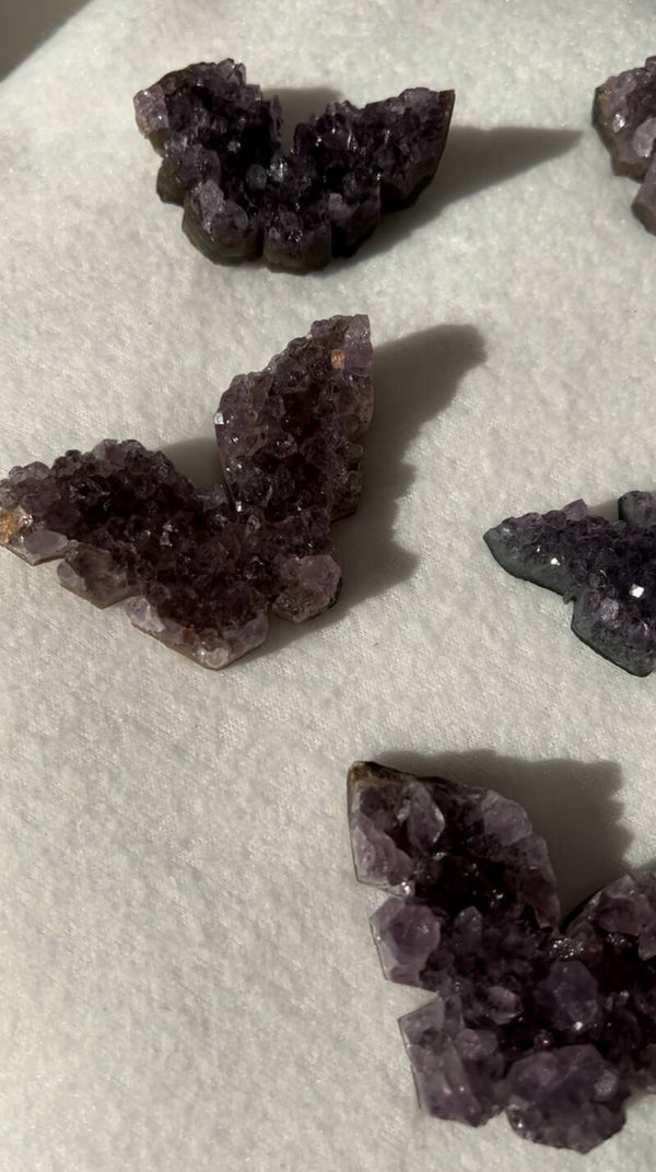 Perfect for adorning your space with a touch of elegance and positive energy, each piece is a unique work of art. Whether displayed on a shelf, desk, or as a thoughtful gift, our Amethyst Butterfly adds a whimsical and mystical charm to any environment.