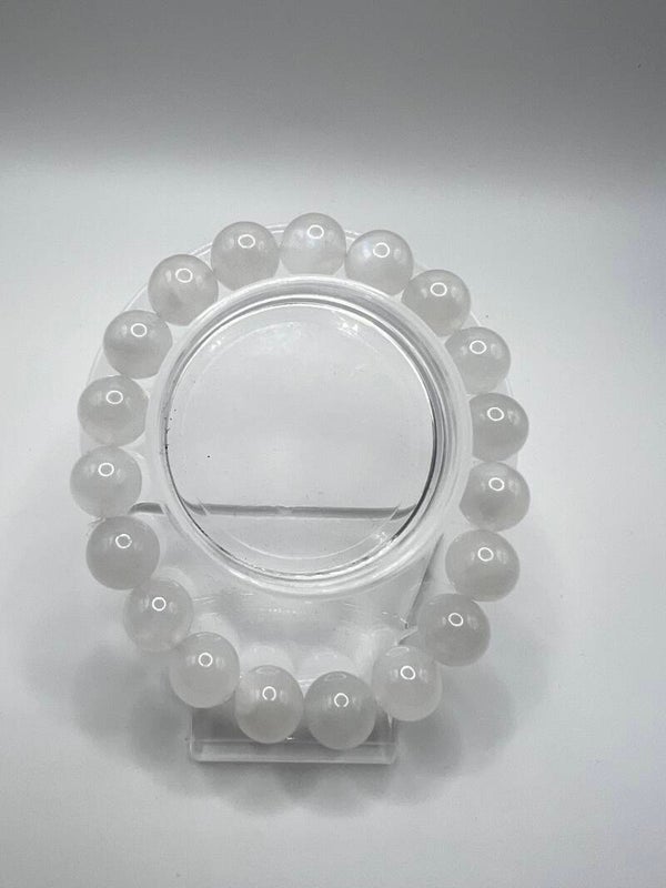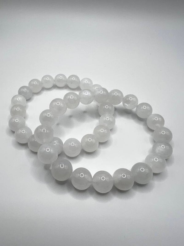 Immerse yourself in the calming and balancing aura of white moonstone, known for promoting emotional stability and enhancing intuition. As you adorn your wrist with the delicate glow of these stones, feel the gentle, feminine energy empowering your aura.