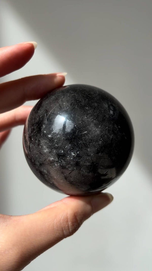 Introducing our Black Tourmaline Sphere—a powerhouse of protection and grounding energy.