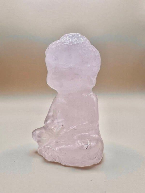 Rose Quartz Buddha – a harmonious blend of spiritual wisdom and the gentle energies of love. With her calming presence and delicate pink tones, this is a symbol of both enlightenment and the nurturing properties of love.